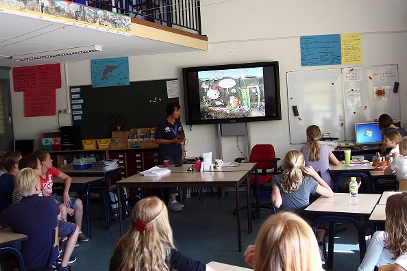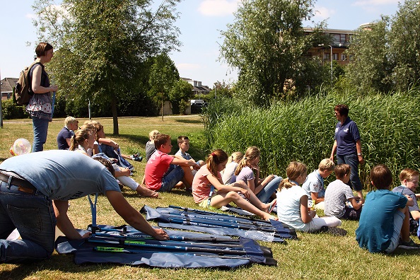 Nu stond er nog een theorieles en een praktijkles vissen op het programma. Afgelopen vrijdag was het zover, een groep van 28 leerlingen kreeg in de ochtend theorie van Ans van Heumen van Federatie Midden Nederland, geassisteerd door Peter Samson en Rob Delgijer. Tijdens deze les kwamen onder andere de verschillende vissoorten aan bod.